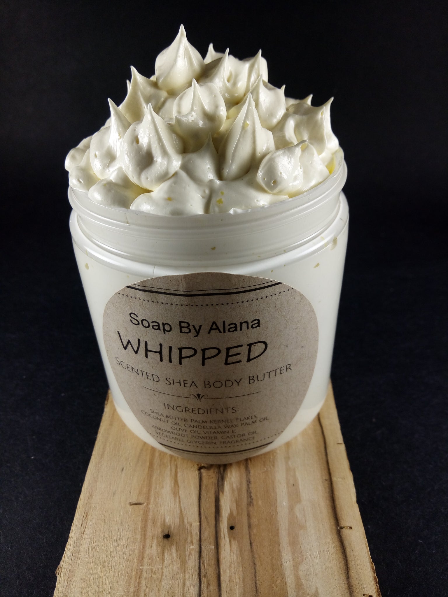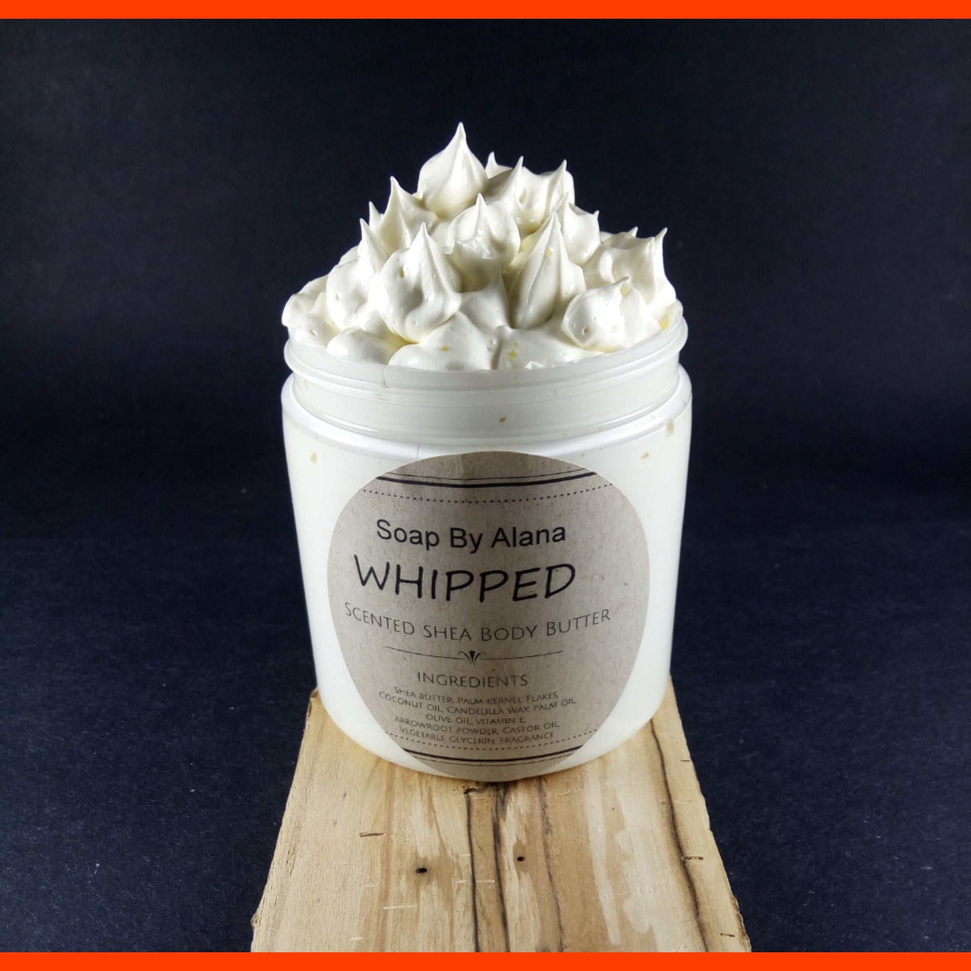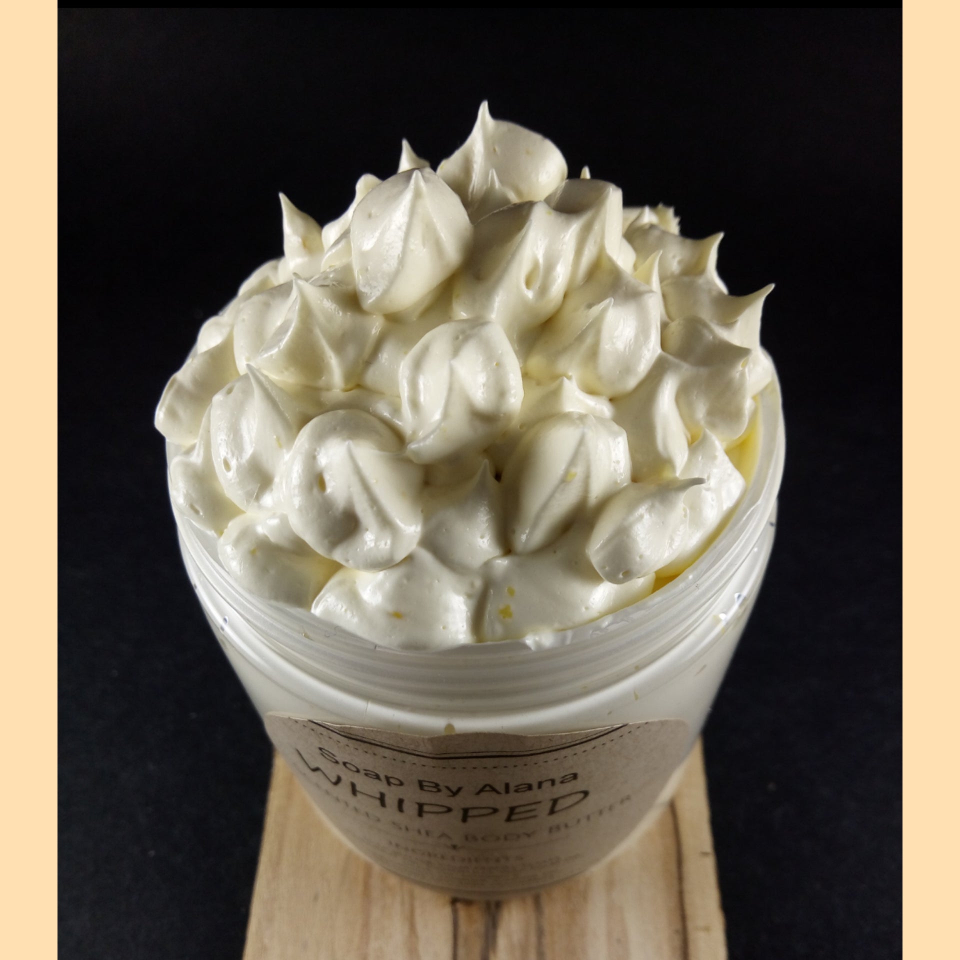 Handcrafted Shea body butter. Whipped Body Butter containing skin friendly Shea butter, coconut oil, and rice bran oil.